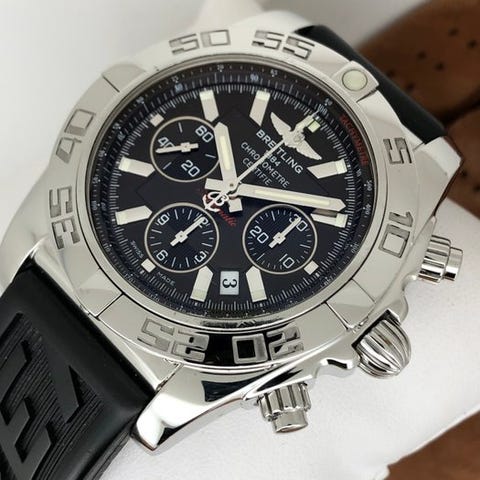 Breitling - Wings Chronometer Automatic - A10350Viitenumero: A10350Kotelon materiaali: ruostumaton teräsHalkaisija: 38 mmKello: hopeaLasi: naarmuuntumaton safiirikristallirannekoru: ruostumattomasta teräksestäRannekkeen pituus: 18 cm (sisältäen kotelon)Lukko: taitettavaKehä: yksisuuntaisesti pyöriväKotelon takakansi: SolidKäytetty ja erittäin hyvä kuntoLiike: AutomaattinenToiminnot: Päivämäärä, Tunti, Minuutti ja SekuntiLisävarusteet: Ei. (Kuvissa näkyvä laatikko on kuvausalustani.)Lähetetty DHL Expressillä, FedExillä tai UPS Expressillä (se on niin turvallista ja nopeaa).Se lähetetään EU-alueelta.WatchResources
