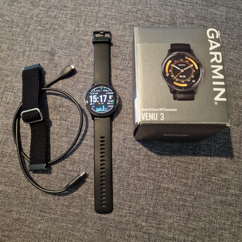 Garmin älykello, Venu 2. Mukana tulee laturijohto. Kello hyvässä kunnossa, ranneke pitää vaihtaa!