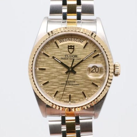 // HUOMAUTUS TARJOAJALLE //Kun kelloon on asennettu jälkimarkkinoiden osia tai toisen valmistajan alkuperäisosia, kelloa pidetään kustomoituna kellona. Tämä tarkoittaa, että kello voi sisältää komponentteja, jotka poikkeavat alkuperäisistä tehtaan osista. Kustomointi voi vaihdella suuresti, joten korostamme seuraavia mahdollisuuksia täyden läpinäkyvyyden takaamiseksi:- Jälkimarkkinaosat -Kellossa voi olla kolmannen osapuolen komponentteja (esim. kehykset, kellotaulu, viisarit, kristallit, ranneke ja jalokivien kiinnitykset), jotka eivät ole tuotemerkin omistajan valmistamia. Nämä osat lisätään usein esteettisistä syistä, mutta valmistaja ei pidä niitä alkuperäisinä.- Alkuperäisiä osia muista malleista -Jotkut osat (esim. kellotaulut tai rannekkeet) voivat olla peräisin muista saman brändin aidoista kelloista. Vaikka nämä osat ovat aitoja, ne eivät alun perin olleet tämän tietyn mallin tai viitenumeron yhteydessä, mikä saattaa vaikuttaa keräilyarvoon tai valmistajan huolto palvelun mahdollisuuksiin.- Ei-alkuperäisosat -Joissakin tapauksissa räätälöidyt kellot voivat sisältää osia, jotka eivät ole alkuperäisiä eivätkä merkin valmistamia. Nämä komponentit voivat vaikuttaa kellon arvoon.Mukautuskellot eivät välttämättä ole oikeutettuja merkin viralliseen huoltoon tai takuuseen. Kaikki tarjoukset tulee tehdä täysin tietoisina kuvatusta räätälöinnin tilasta.=========================================================================Malli: Tudor Classic Date 21013 Kultainen pellavakuvioitu kellotaulu, miesten automaattikelloAlkuperämaa: SveitsiRuostumaton teräsKellotaulun väri: kullanvärinen pellavatekstuuriKotelon koko: 36 mm (ilman kruunua)Soveltuvuus: Sopii jopa 18,5 cm:n ranteeseen.Koneisto: Tudor (ETA) 2824-2 automaattinen koneistoVirrankesto: noin 38 tuntiaToiminnot: Ajan pitäminen, automaattinen ja manuaalinen windi, liukuvat kädet, päivämäärän näyttö, tiivistetty kruunu, hehkuvat kädet ja tunnin indeksit.Vedenkestävyysominaisuutta ei ole testattu tässä kellossa. Älä suosittele uimaan tai sukeltamaan. Ole varovainen käyttäessäsi kelloa veden lähellä.—// TOIMITUKSEN SISÄLLÖT //—Ei *(sisältää jälkimarkkinakellokotelo)Alkuperäiset asiakirjat: Ei—// EHDOT //—Kulumaa kotelossa | ORIGINAL | : Pienet *(Hiusviivat ja kevyet kulumat sivuilla.)Käytön jälkiä takakannessa | ALKUPERÄINEN | : Pieni *(pienillä hiusviivoilla ja kevyillä naarmuilla)Kulumista kristallissa | ALKUPERÄINEN | : Merkityksetön *(Alkuperäinen safiirikristalli).Käytön jälkiä kellotaulussa | ORIGINAL | : Ei / vähäpätöinen ("SWISS MADE" tulostettu kellotaulun alaosaan klo 6, tulosteet hyvässä kunnossa. Lume-pisteet ehjät. Lähes virheetön kunto)Kulumaa käsissä | ALKUPERÄINEN | : Ei mitäänKäytön jälkiä kehyksessä | JÄLKIHOITO | : Ei mitään (jälkimarkkinan kultauksella päällystetty metallikehys)Kruunussa käytön jälkiä | ORIGINAL | : Pieni (Alkuperäinen Tudor-kruunu kilven logolla. Näkyviä kulumisen merkkejä naarmujen kera. Ruuvikiinnitys toimii noin 2 kierroksella)Rannekkeen tai hihnan kuluminen | JÄLKI-RAKENTAMINEN | : Ei mitään (jälkimarkkinan nahkahihnoja ja jälkimarkkinan metallinen solki)KUNTOARVIOINNIN STANDARDI:Ei mitään (Paras) > Merkityksetön > Pieni > Keskitaso > Raskas > Vaurioitunut (Huonoin)— // TIMEGRAPHER PERFORMANCE //—Tahti: +5 sekuntia päivässä(näytetään +/- sekuntia päivässä, osoittaen kuinka paljon aikaa s