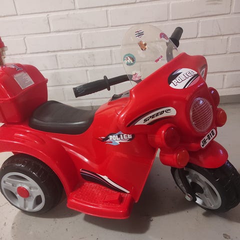 Käytettynä ostettu ja muutaman vuoden kylmässä ulkovarastossa säilytetty lasten sähköauto. Akku huono.