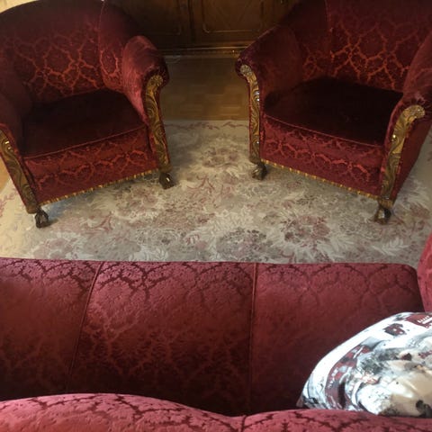 Myydään kuvan mukainen kolmen istuttava sohva ja kaksi nojatuoli.
