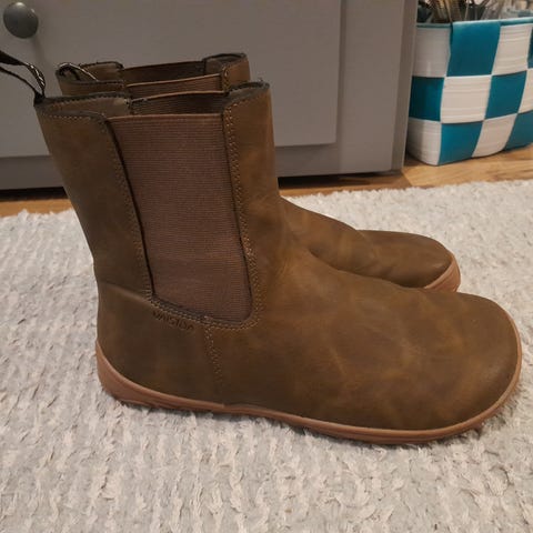 Vain pari kertaa kokeillut paljasjalkasaappaat. Koko 40, mutta ostettu kokoon 39. Lämmin toppavarsi helppo nyörittää sopivaksi. Sisäpohja 26cm. Mukavat, kuten paljasjalkakengät yleensäkin.