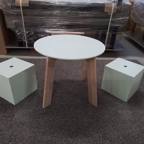 Hyvässä käytetyssä kunnossa olevat lasten pöytä ja tuolit. Ovat ehjät, mutta jossain kohdissa näkyy värikynän jälkeä, kuvissa näkyy. Tuolit ovat eri korkuiset.