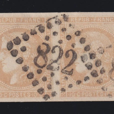 Ranska 1853 - Empire, hammastamaton, nro 13Aa 'jaune citron' en paire oblitéré