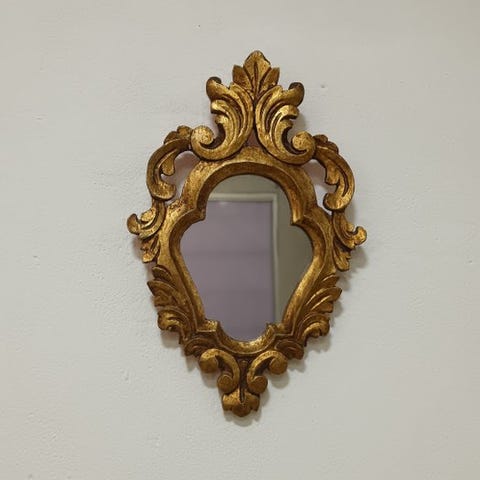 Tyyli: Ornamentaalinen muotoilu voluutteineen, kukka-aiheineen ja kaiverrettu harja viittaavat rokokoo- tai Louis XV -tyyliin, joka on yleistynyt vintage-replikoissa.Materiaali: Veistetystä puusta.Muoto: Siinä on soikea kehys.Mitat: noin 101 cm korkeus x 65 cm leveys x 5 cm paksuus.Syvyys. Markkinoilla on peilejä, joiden mitat ovat samankokoiset.Kunto/vahingot: Hankaus yläreunan kaiverruksessa, viittaa kevyen käytön merkkiin tai pieneen vauriin kehyksen yläosan kaiverretussa osassa.Tällainen peili on suosittu koriste-esine, joka antaa minkä tahansa tilan klassisen ja elegantin ilmeen.Se lähetetään huolellisesti paketoituna ja empaikoituna.