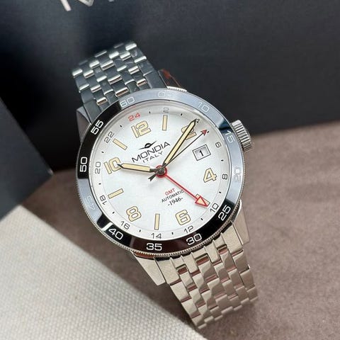 Huomionarvoinen miesten rannekello Mondialta. Kello toimii laadukkaalla kvartsikoneistolla ja siinä on näyttävä viisukiekko tummalla taustalla ja hopeanvärisin yksityiskohdin. Lisäksi siinä on kronografi ja päivämääränäyttö kuuden tunnin kohdalla.Kello lepää mukavalla nahkaisella kellonrannekkeella.Kello toimitetaan näytetyillä (valkoisilla) tarvikkeilla.kvarssimateriaali: teräshalkaisija: n. 43 mm ilman kruunuaPituusranneke: noin 19 cm.Ikä: 2020+Se lähetetään vakuutettuna.Valokuvien ottaminen on osa kuvausta.