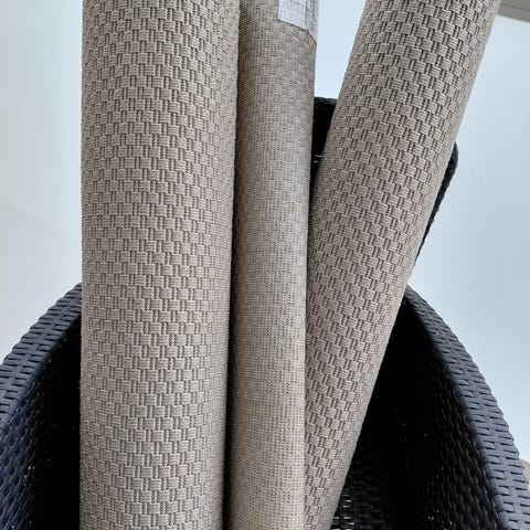Pieni harmaa käytävänmatto jossa mustat raidat