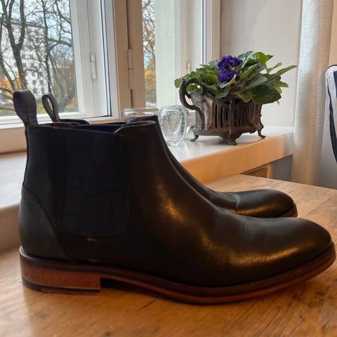Upeita slip-on-kenkiä A. Testoni -merkiltä, koossa 9/43.Uusi ilman laatikkoa. Kengänmuotit, jotka näkyvät kuvissa, eivät sisälly.Entinen myymäläesittelymalli. Nahassa on kevyitä käytön jälkiä ja värimuutoksia sekä oikean kengän nilkan kohdalla sisäkerroksessa oleva pieni halkeama. Katso kuva. Ei näy ulkopuolelta.Väri voi hieman poiketa kuvien väristä.MittojaKokonaispituus: 30,3 cmNenän suurin leveys: 10,3 cmMaksimileveys hak: 7 cmVakuutettu lähetetty seurantatunnuksella.