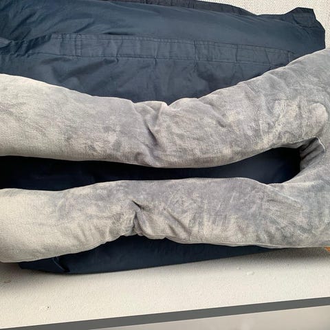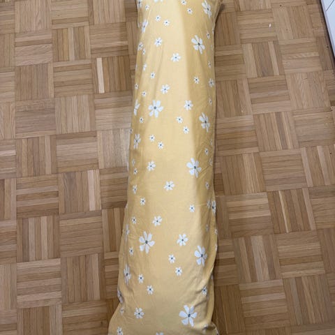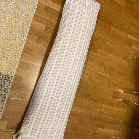 Siisti vartalotyyny. Pituus n. 135 cm. Pestävä ja irrotettava päällinen.