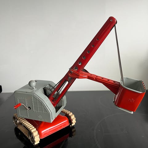Saksalainen vintage peltilelu kaivuri MFZ Blechkran / Raupenbagger 1950-luku