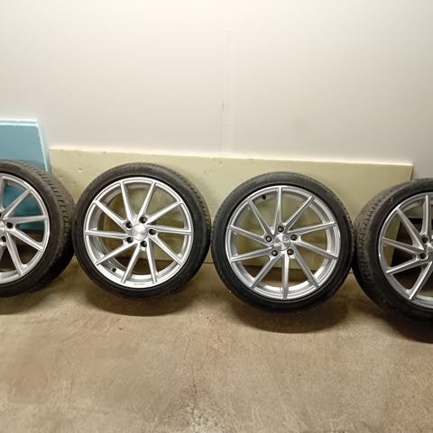 Tuosta 18” räppi vannetta jollekkin.. ollut N1 seatin alla. Sopi omasta mielestä erittäin hyvin. Vanteiden mukana tulee etuvanteille spacerit ja pultit muuten ottaa iskari torniin kiinni. Kumit kehnot mutta eteen on paremmat kumit irtonaisena pienestä lisähinnasta.Edessä 225/40R18,Takana 255/35R18