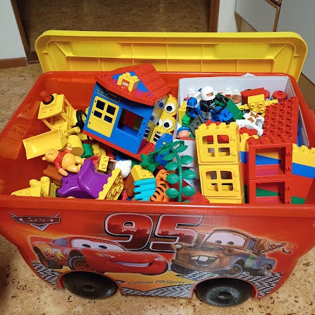Iso kassillinen Lego Duploja. Kassin leveys noin 50cm. Kaikki on hyväkuntoisia.
