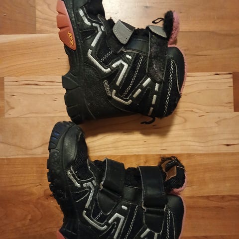 Lasten talvikengät. Koko merkintä kulunut pois mutta todennäköisesti koko on 27. Pohjallisen pituus on n. 18,3 cm.
