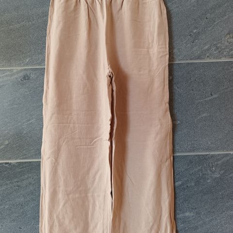 beigenharmaat /hiekanbeiget housut muutaman kerran pidetty enkä näihin enää harmittavasti millään mahdu. Hyvälaatuinen kangas, sivussa kuminauhat ja tuplanappi. Lahkeet suorat. Kangas ei jousta, vastaa kokoaan.