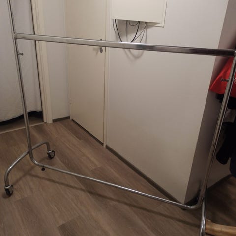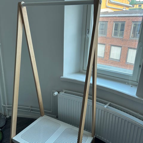 Ferm Living vaaterekki nahkahihnoilla. Rekissä on kaksi ruskeaa nahkahihnaa, joiden varassa kulkee vaakasuora tanko vaatteiden ripustamiseen. Hihnoissa on säätöreiät korkeuden muuttamista varten. Sopii esimerkiksi vaatteiden, takkien tai asusteiden säilytykseen eteisessä, makuuhuoneessa tai vaatehuoneessa.