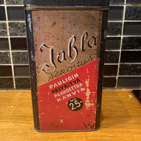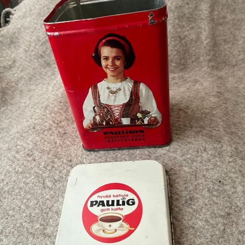 Muut avainsanat: peltipurkki, Paulig-tyttö, Paula, kahvi.
