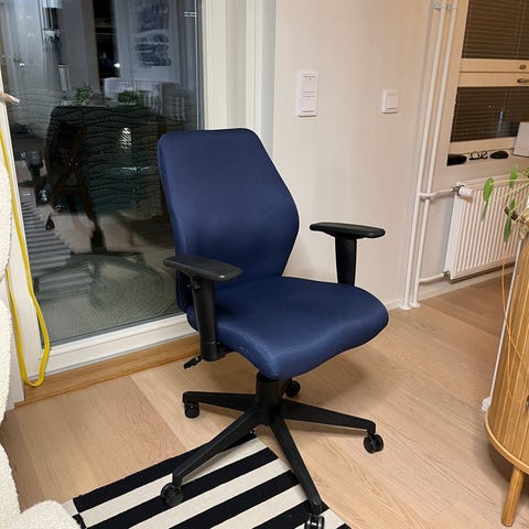 Korkeus 87cm (selkänojasta lattiaan), leveys 39cm ja syvyys 43cm. Viat näkyy kuvissa.