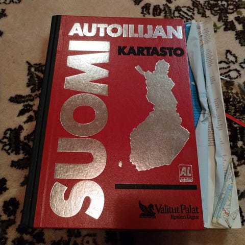 Karttakirja, jossa myös liikennemerkkejä , ensiapuohjeita yms vuodelta 1983.