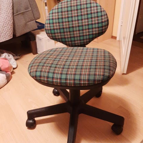 Työtuoli, verhoilu ei ehjä mutta tuoli mekaanisesti kunnossa. Sopii esim. kellariin tai varastoon tilapäiskäyttöön