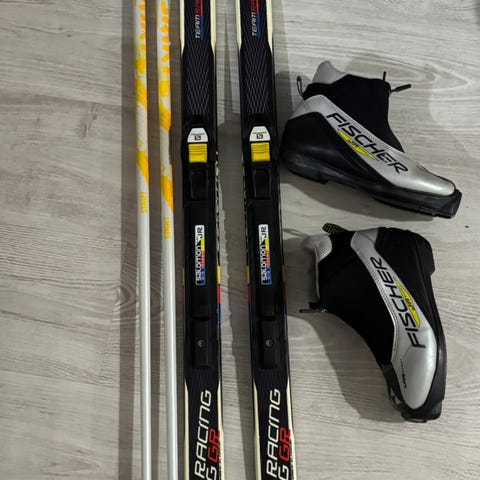 Sukset 155cm ja sauvat 120cm