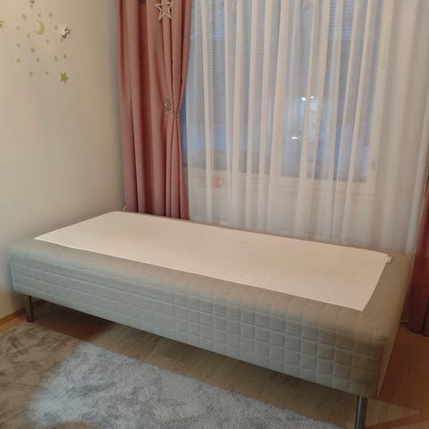 Erittäin hyvässä kunnossa Jyskistä ostettu harmaa sängyn runko. Ei naarmuja tai halkeamia, sängyn päädystä ainoastaan kuuluu pientä ääntä.