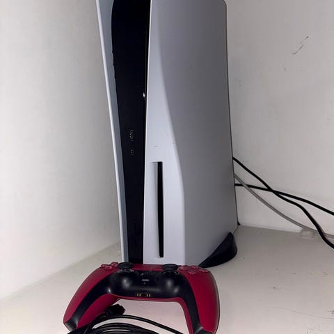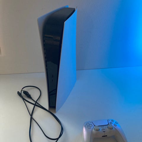 Hyvässä kunnossa oleva ja vähälle käytölle jäänyt levyasemallinen Ps5 konsoli ja ohjain.