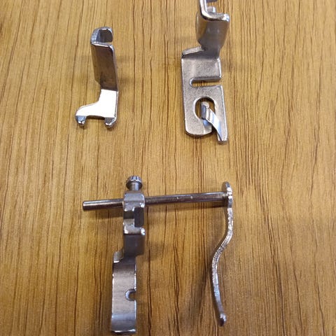 Jalat on kunnolla ultraäänellä putsattu. Napinläpijalasta puuttuu se pieni peltinen klipsi, se täytyy korvata teipillä tms.