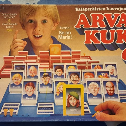 seurapeli perhepeli lastenpeli peli lautapeli klassikko ysäri 90-luku salaperäisten kasvojen arvoitus