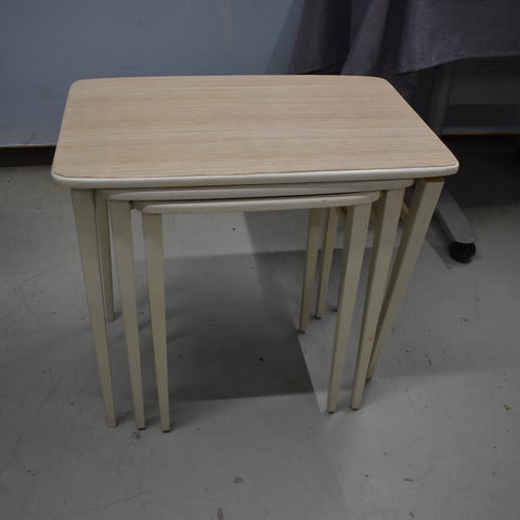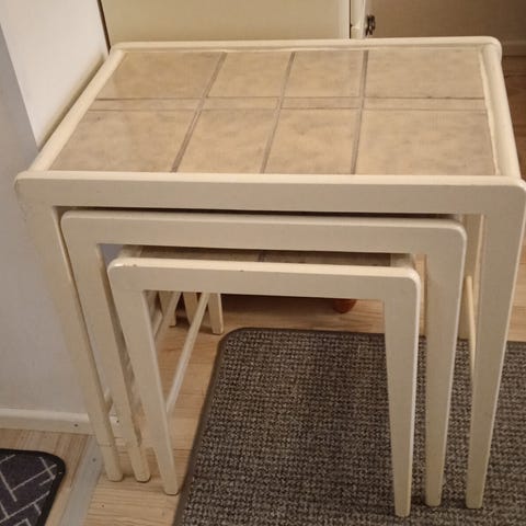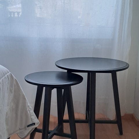 Myyddän hyväkuntoinen musta 3-osainen sarjapöytä. Isoimman koko 55x38 cm, korkeus 50 cm.