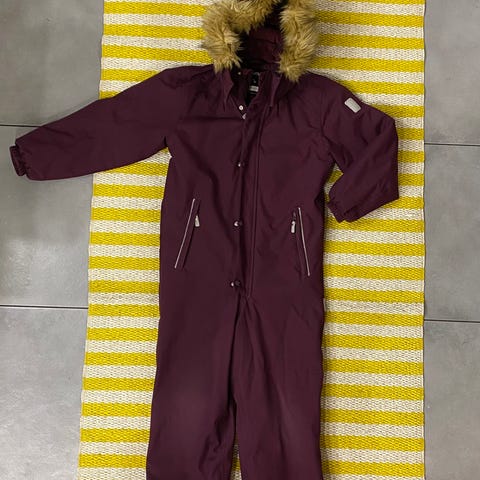 Reiman, lasketteluun soveltuva talvihaalari. Kokolapussa 128 mutta sanoisin että erittäin hyvin menee myös 134 kokoa käyttävälle. Meillä oli tämä puku viime talvena ja nyt alkutalven käytössä ja vaihdettiin tästä puvusta koon 140 pukuun.
