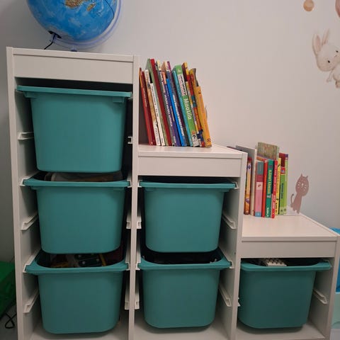 Myydään hyväkuntoinen Ikea Trofast hylly laatikoineen. Muutama tarra liimattu sivuun ja pientä elämän jälkeä, mutta tukeva ja siisti.