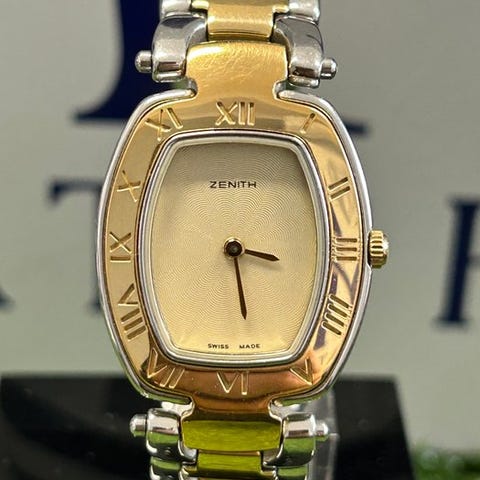 Merkki: ZenithMalli: AcropolisKoneisto: Sveitsiläinen kvartsiKotelon koko: 35mmRannekkeen koko: 19 cm alkuperäinen kokonaispituus.Neljännes: ValkoinenCorona: LogataTakakappale: ruuvilla kiinnitettyKunto: Erinomainen (vain pieni merkki bezelin 9. kohdalla, mutta ei mitään huomattavaa)Sisältö: kellokotelo, yleinen malli