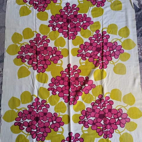 Ikäisekseen hyvä kuntoiset Tampellan verhot. Lev 124, korkeus 224. Alhaalta aukaistu käännös, kun minulle lyhyet. Ylhäällä rypytysnauha.