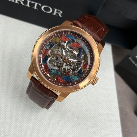 Kaunis herrakello Heritorin Antoni-sarjasta. Referenssinumero HERHS4303. Kellon voimanlähteenä on automaattinen koneisto, joka on näkyvissä kellon takana. Koneisto on myös osittain näkyvissä etupuolella. Varustettu erikoisella ajanäytöllä, jossa minuutti- ja tuntiviisarit ovat 12:n tuntimerkin kohdalla, ja sekuntiviisari on keskellä. Varustettu huomiota herättävällä muotoillulla kotelolla.Uusi ja käyttämätön!Kello lepää mukavalla nahkaisella kellonrannekkeella.Toimitetaan sisältäen kaikki näytetyt tarvikkeet ja valkoiset asiakirjat.Kello: automaattinenmateriaali: teräsläpimitta: noin 43 mm ilman kruunua.Hihnan pituus: noin 20 cm, mukaan lukien kello.Ikä: 2020+Se lähetetään vakuutettuna.Valokuvien ottaminen on osa kuvausta.