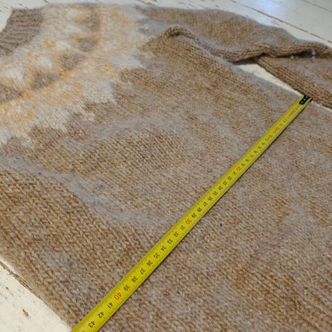 Voi pestä villapesuohjelmalla koneessa, muotoile kosteana laakaan esim.