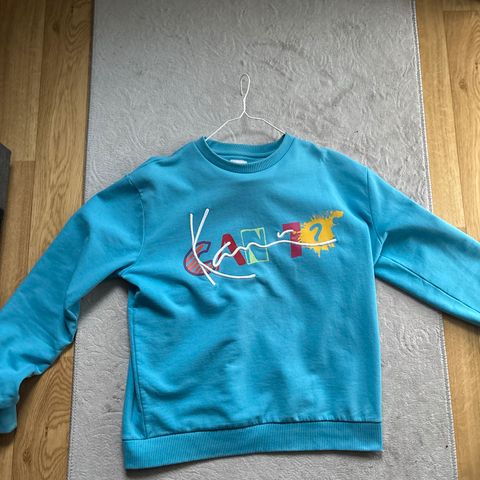 Karl kanin harmaa miesten collegepaita. Menee myös naiselle. Koko iso XL. Oikeassa olkapäässä pieni reikä, joka on korjattu, muuten erinomaisessa kunnossa. Reikä näkyy kuvassa 5.