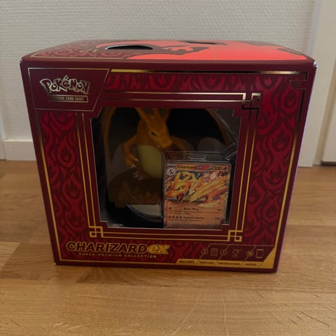 Uusi ja tehtaan muoveissa oleva Pokemon Ultra Premium Collection Mega Charizard X ex -boxi.