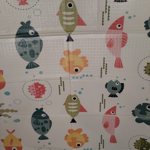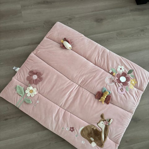 BabySteps vauvan leikkimatto kettukuosilla. Pyöreä pehmeäpintainen leikkialusta, jossa ruskea reunus ja keskellä kettuperhe-aiheinen kuvitus. Matossa on kiinnityskohdat leikkikaarille ja riippuleluille. Matto on vesipestävä valmistajan ohjeiden mukaan.