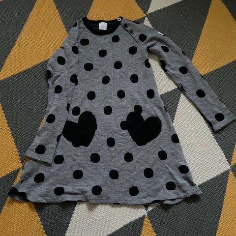 Myydään tanskalaisen Dilling-merkin pehmeä merinovillamekko koossa 122/128. Mekon väri on tumma vanha roosa. Rinnuksessa pieni hortesian kukkiva oksa kuviona. Sopii arkeen ja juhliin.