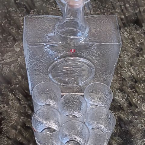 Iittala lasikarahvi ja snapsilasit Kalinka