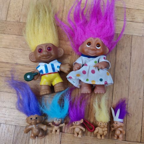 Myydään trollipeikko. Tollipeikon korkeus on noin 10 cm. Se oli 1990-luvulla suosittu leluhahmo.