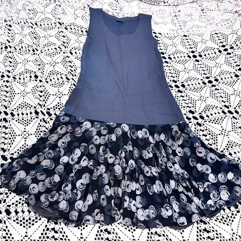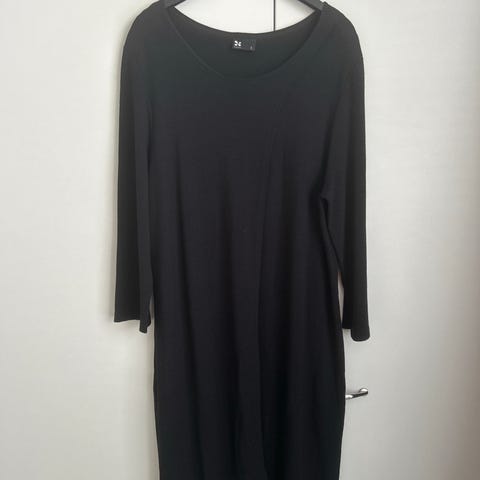 Uudenveroinen musta Nanson lyhyt mekko /tunika. Koko L, kainalo-kainalo 56 cm, olka-helma 83 cm, halkiot 20 cm molemmin puolin. 70% viskoosia, 25% polyamidia, 5% elastaania.