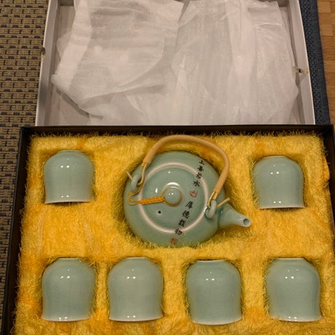 Myydään teeastiasto, 4 korvatonta teekuppia ja 1 teekannu. Hinta yhteensä 20 euroa. Nouto tai postitus.