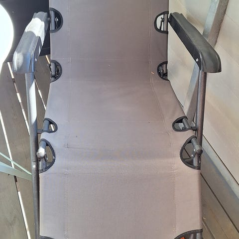 Ehjä ja siistissä kunnossa oleva aurinkotuoli. Pehmuste ei ole alkuperäinen, mutta sopii siihen kyllä. 6 säätöä, saa myös ihan makuuasentoon. Mukava lepotuoli, mutta ei enää mahdu meidän parvekkeelle. Viime kesänä ollut satunnaisessa käytössä. Nouto Hollolan kuntakeskuksesta ihan prisman vierestä. Myynnissä myös facen kirppisryhmissä.