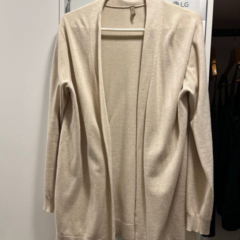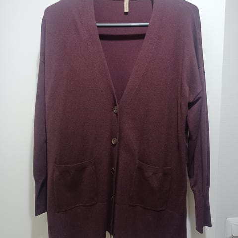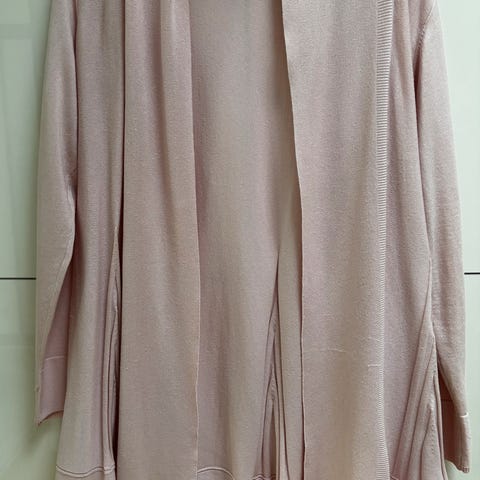 Soyaconcept neuletakki naisille, koko L, mutta se on aika nafti L. Väri vanha roosa. Materiaali viskoosia. Neuletakissa on pitkät hihat, avonainen etuosa ja solmittava nauha vyötäröllä. Reunoissa on röyhelöyksityiskohdat. Alla oleva t-paita kaupanpäälle. Sen koko S, mutta on reilu.