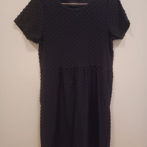 Siistissä kunnossa oleva Aarre Marisa mekko, musta dot kuosi, koko XS. 3/4 hihat, sivuilla taskut.