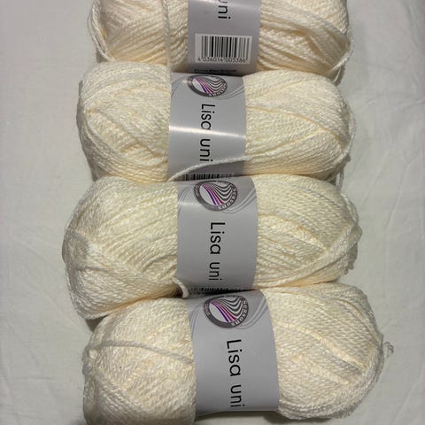 Grundl Lisa Uni pehmeä lanka. Tästä piti valkoisen kanssa tulla pätkis-haalari vauvalle, vaan vauva ehti kasvaa ennen aloitusta. Aloittamattomat kerät.