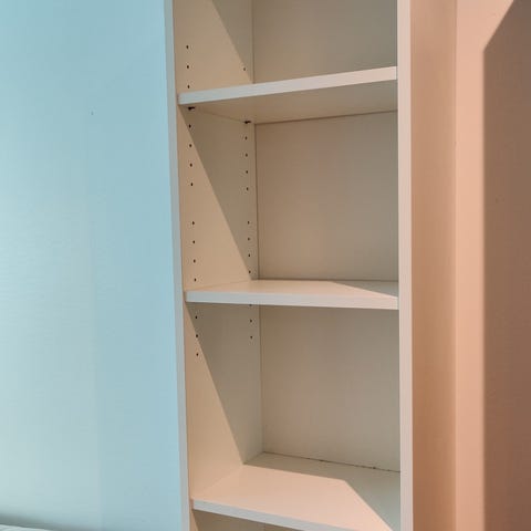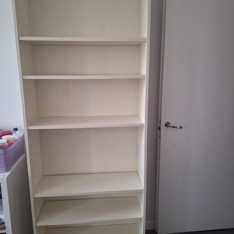 Ikea Billy kaappi, takalevy irti ja vaatii paremman kiinnityksen/naulaamisen. Myös hyllylevy kaipaa kiristämistä.