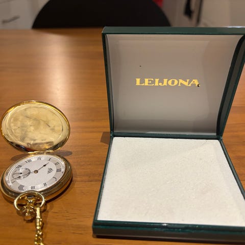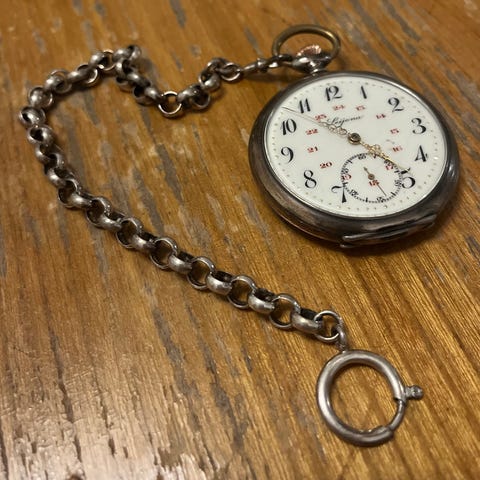 Myyntiin iäkseen upeassa kunnossa oleva täysin toimiva Leijona taskukello vitjalla. Kello käy hyvin ja päivän seurannalla pitää aikaa. Kellon kuoret ovat 0.800 hopea kuoria. Mukaan tulee metallinen kotelo. Tarkempi kunto kuvista.