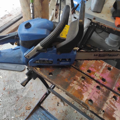 Kuvan moottorisaha. Uusittu polttoaine letku sekä suodatin. Käyntihäiriöitä, kaasuttimen kalvot tai tulppa?